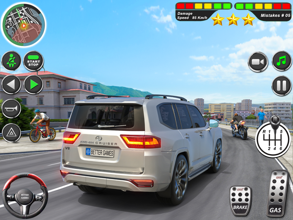 • Smooth Tilt, buttons and steering controls are intelligently designed for this driving school game.