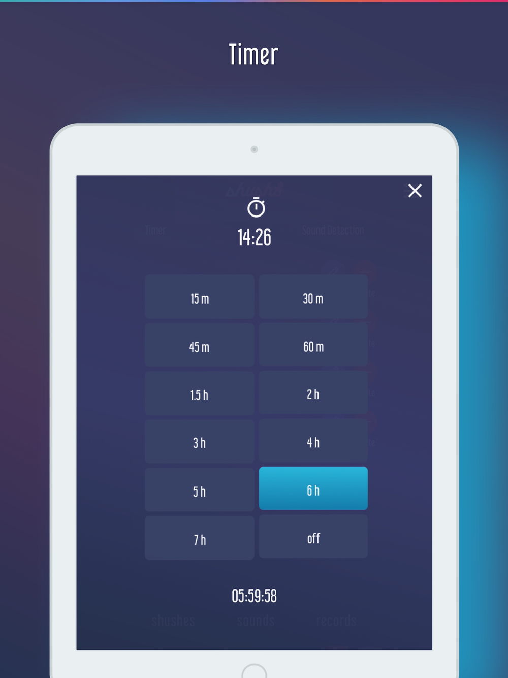 • Select a shush, sound loop or a recording and it will play as long as you like