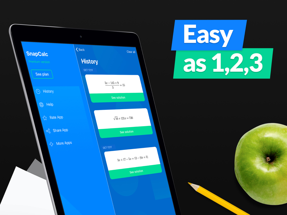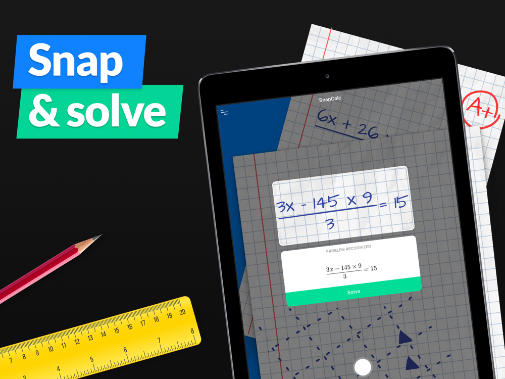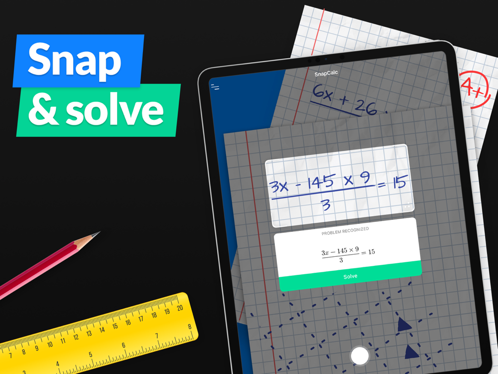 SnapCalc does the math for you. Just snap a picture of a math problem, and voila — the answer is displayed on your screen. From algebra to calculus, the app has solutions to a wide range of topics - and it recognizes handwritten problems too! Learn more quickly and easily with step-by-step explanations so that next time you'll be able to solve the problem yourself - as easy as one-two-three!