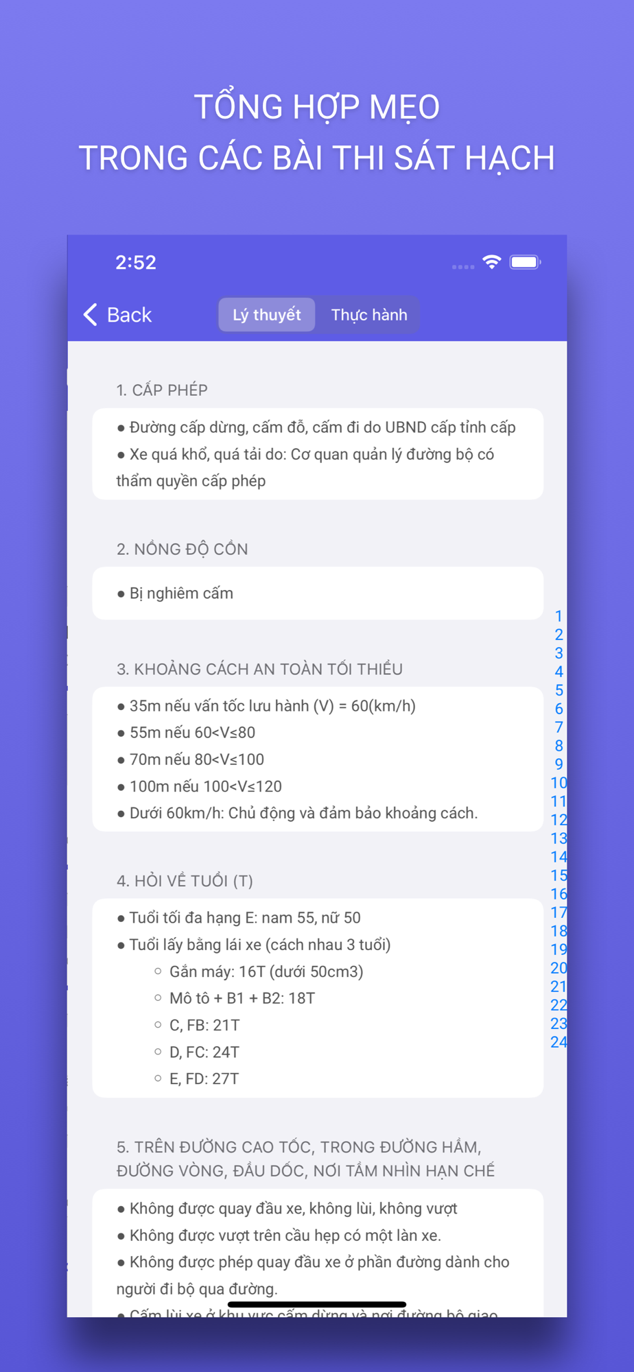 Đây là ứng dụng giúp bạn học lý thuyết GPLX để chuẩn bị cho kỳ thi sát hạch lý thuyết bằng lái xe A1, A2 chỉ trong 3 ngày. Vui lòng thực hiện các bước theo hướng dẫn trong ứng dụng để tiết kiệm thời gian cũng như ghi nhớ đáp án trả lời các câu hỏi thi lý thuyết lái xe đạt kết quả thi tốt nhất và rút ngắn nhất thời gian ôn luyện một cách nhanh chóng nhất!