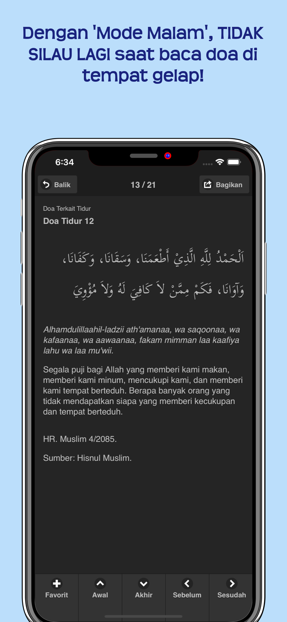 •Tersedia "Mode Malam"! Tidak silau saat baca doa di tempat gelap!