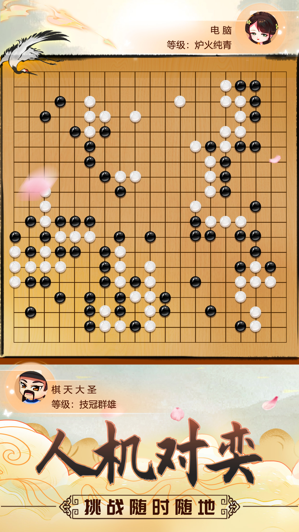 现推出围棋游戏,让您在掌上领略中华五千年的传统文化。从初级房到高级房,各种对手任你选,超智能ai,单机也能提升棋力,界面精美,快来开启你的围棋之路吧!