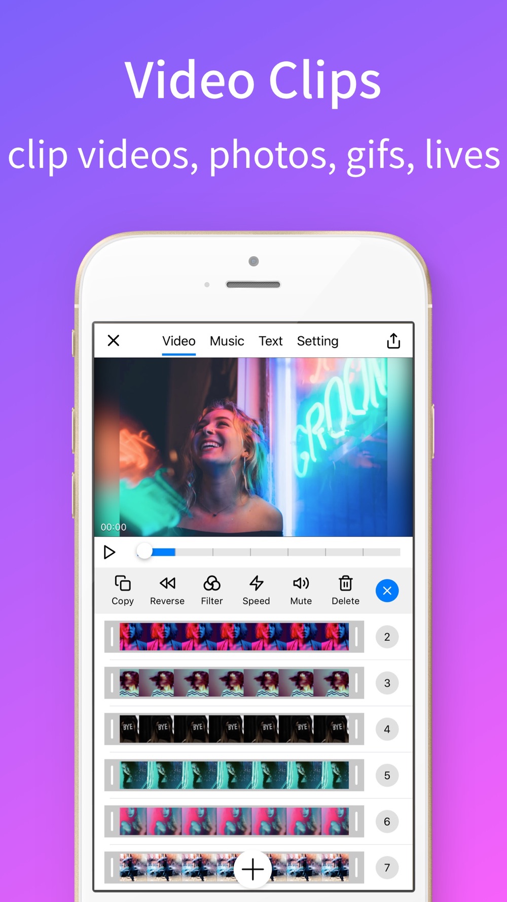 Video Clips is a video editor and movie maker that you can use it to merge multiple videos easily. With Video Clips, you can composite photos or videos together, you also can edit video with multi options such as filtering, speeding, cropping etc.