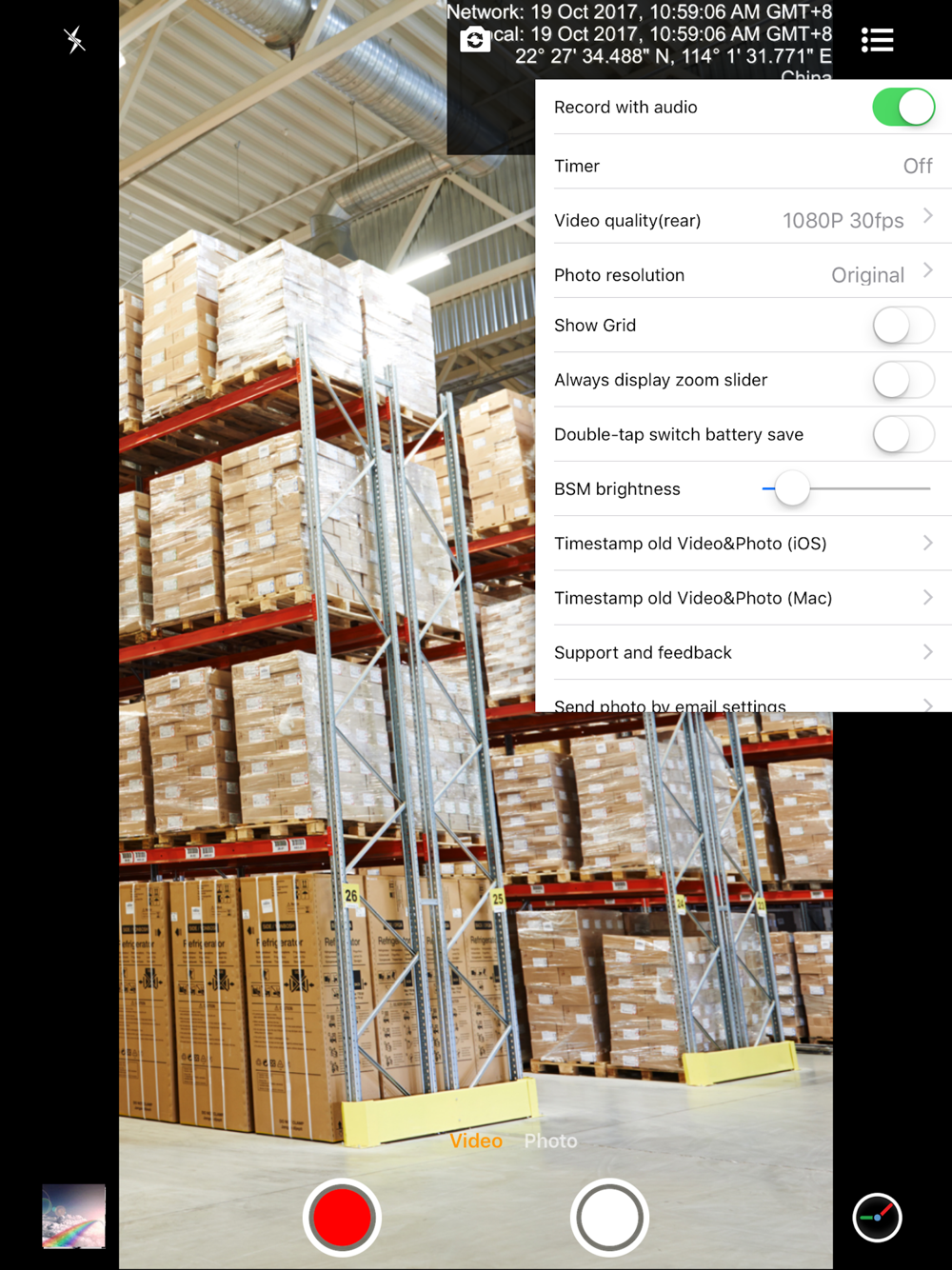 • Add the current date, time, GPS and address watermark when taking photo or video.