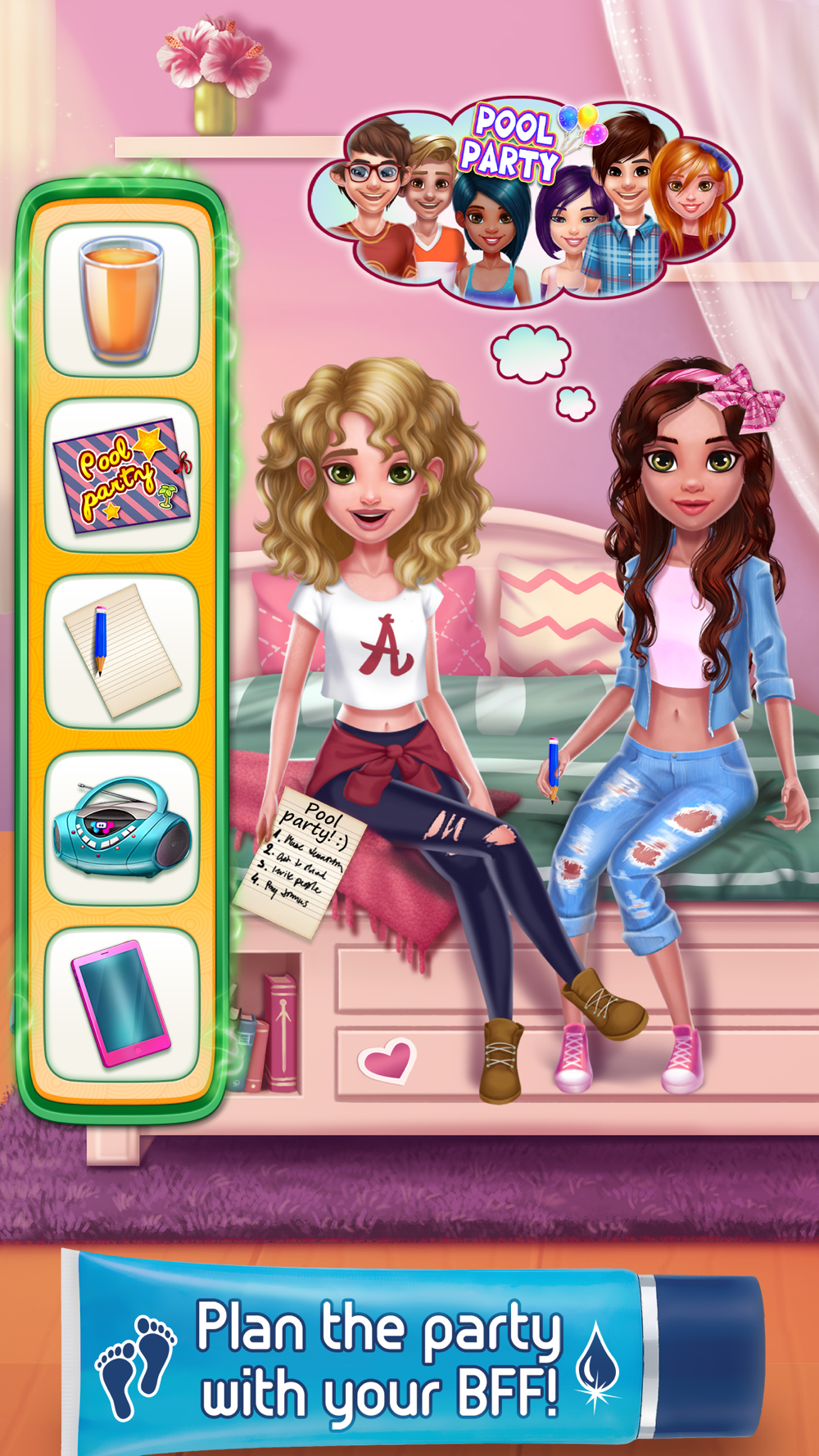 > Plan the party with your best friend: Design the invitations, get out the beach balls, choose the music… make sure everything is just right!