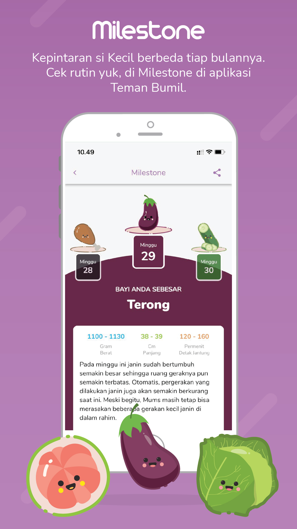 Memantau tumbuh kembang janin dan si Kecil menjadi lebih mudah dan menyenangkan melalui fitur Milestone di Teman Bumil. Dengan ilustrasi yang menarik, memantau perkembangan kehamilan dan anak jadi lebih menyenangkan!