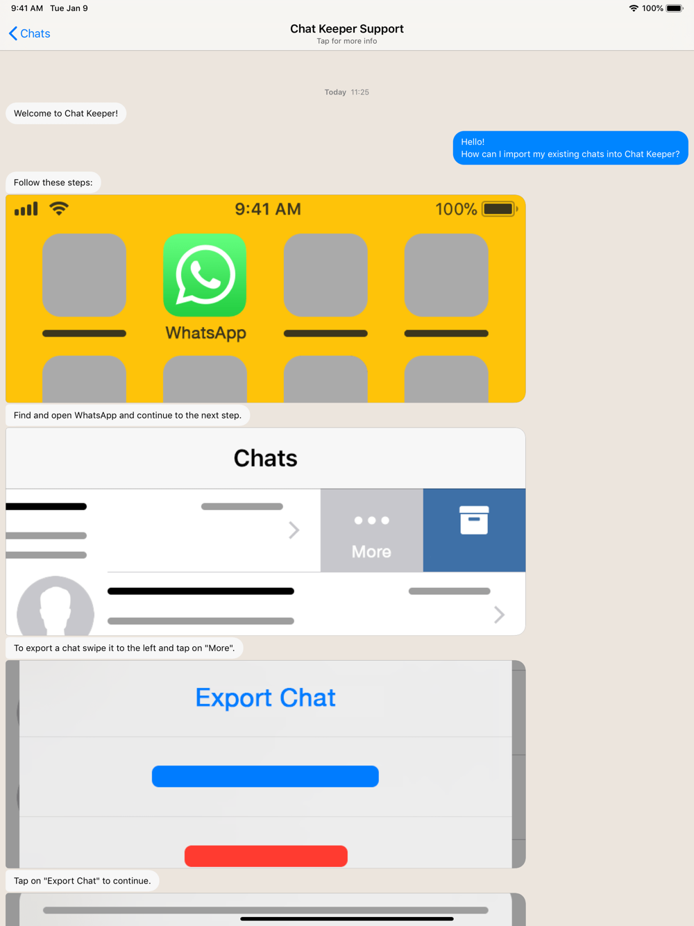If you find Chat Keeper useful, please share our app to your friends and relatives and please leave a rating and review on our App Store page. Thank you!