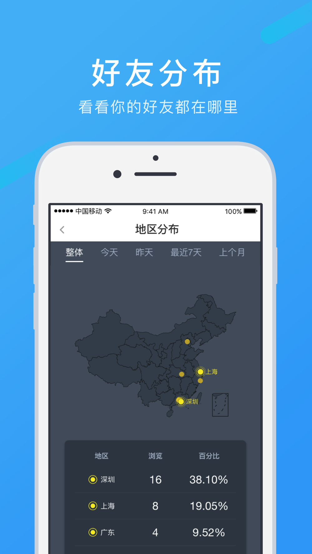 查看您的好友分布在全国哪些区域,我们会在地图上将其标出