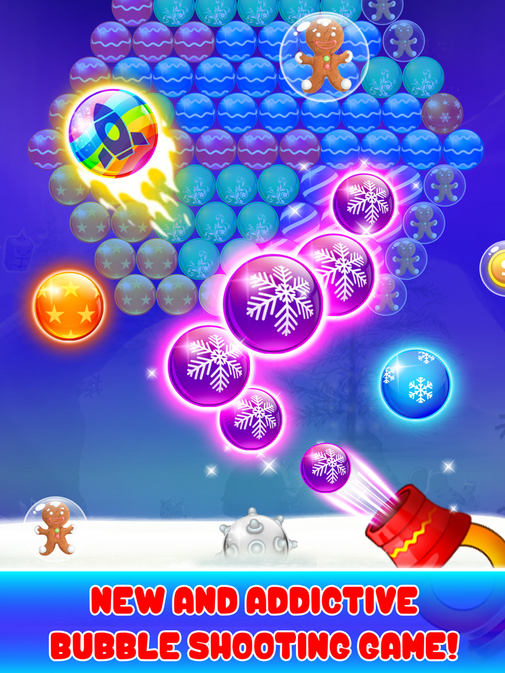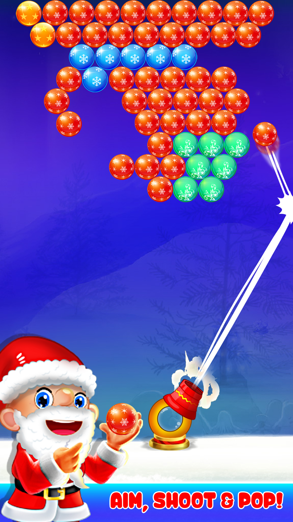 Introducing the excellent bubble shooter game this Christmas with loads of joy and enjoyment. Have fun with Santa and enjoy solving puzzles. Help Santa Claus to collect ginger-breads for gift packing!