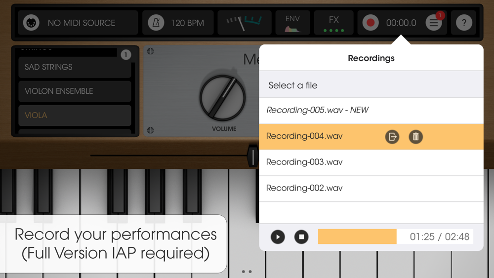 With Mellowsound, you will be able to play Mellotron everywhere, with professional audio quality (16bit/44Khz).