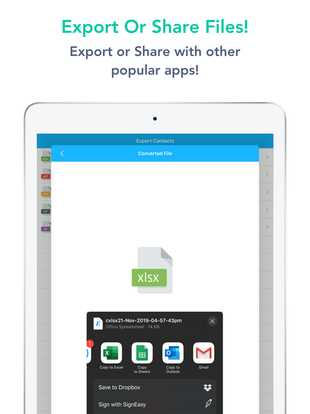 1. Export contacts to XLSX, PDF, CSV or VCF file format
