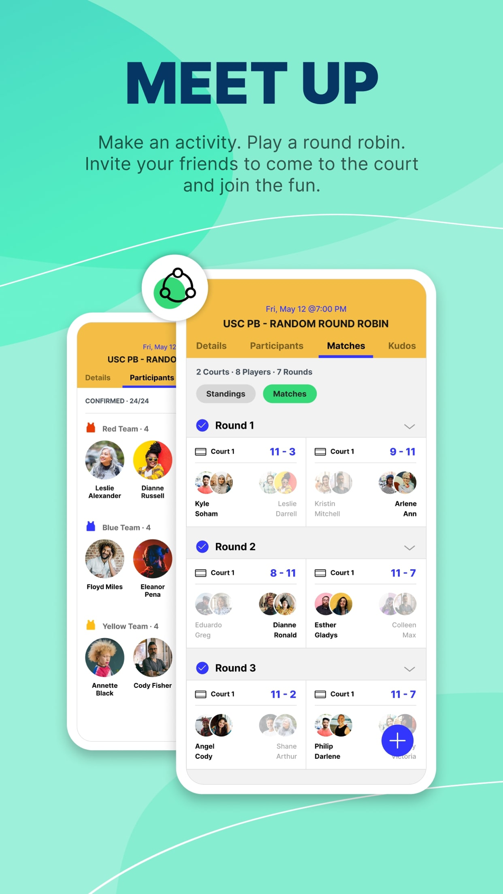 MEET. Make an activity. Play a round robin. Invite your friends to come to the court and join the fun.