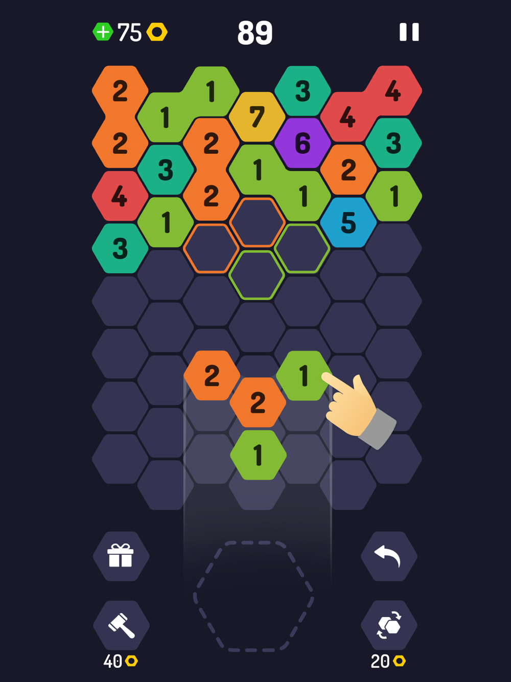 • Form a higher number by merging three or more pieces of the same number.