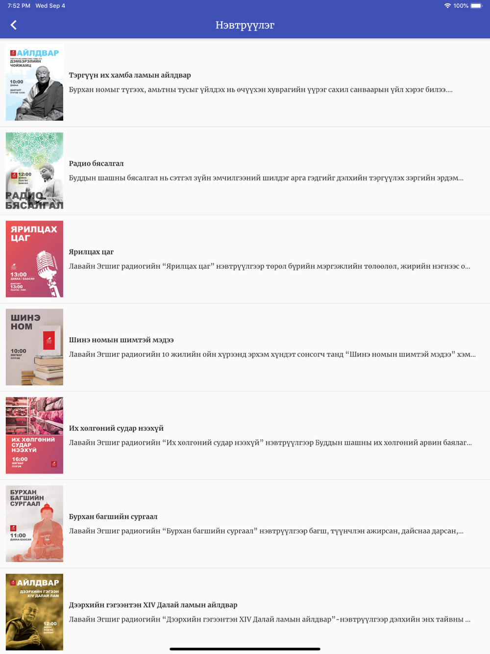Тус радиогийн нийтлэлийн бодлого нь үндэсний түүх, соёл уламжлал, орчин цагийн мэдлэг оюуныг нийтэд түгээн хүртээх, нэн ялангуяа Бурханы шашны сургаалд суурилсан ёс суртахууны эрхэм сургаалиар сонсогчдоо соён гэгээрүүлэхэд чиглэгддэг юм.