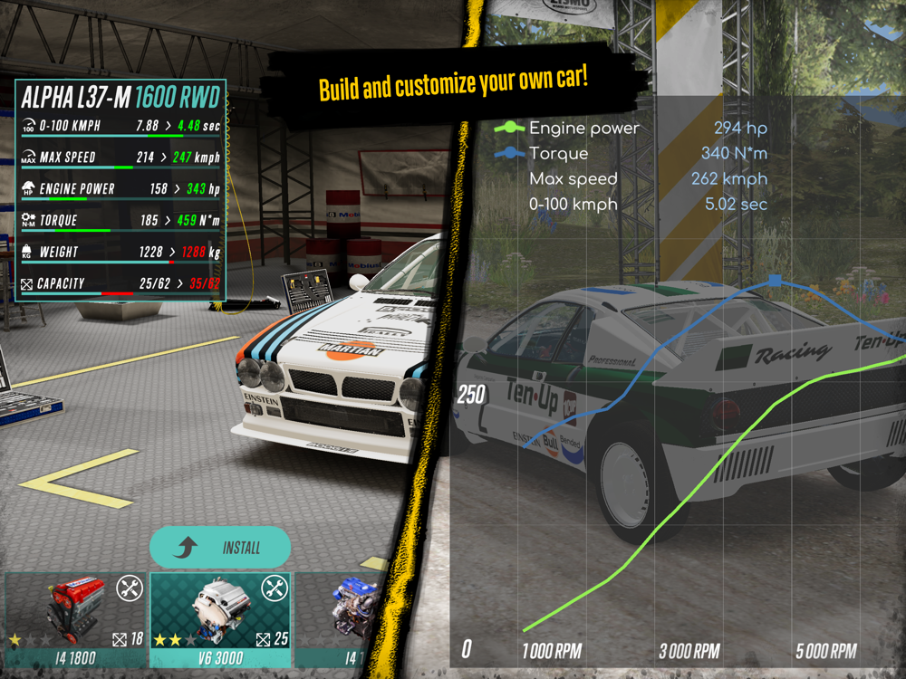 - True-to-life physics of a rally racing car. Choose whether you’d like to drift or get a full grip