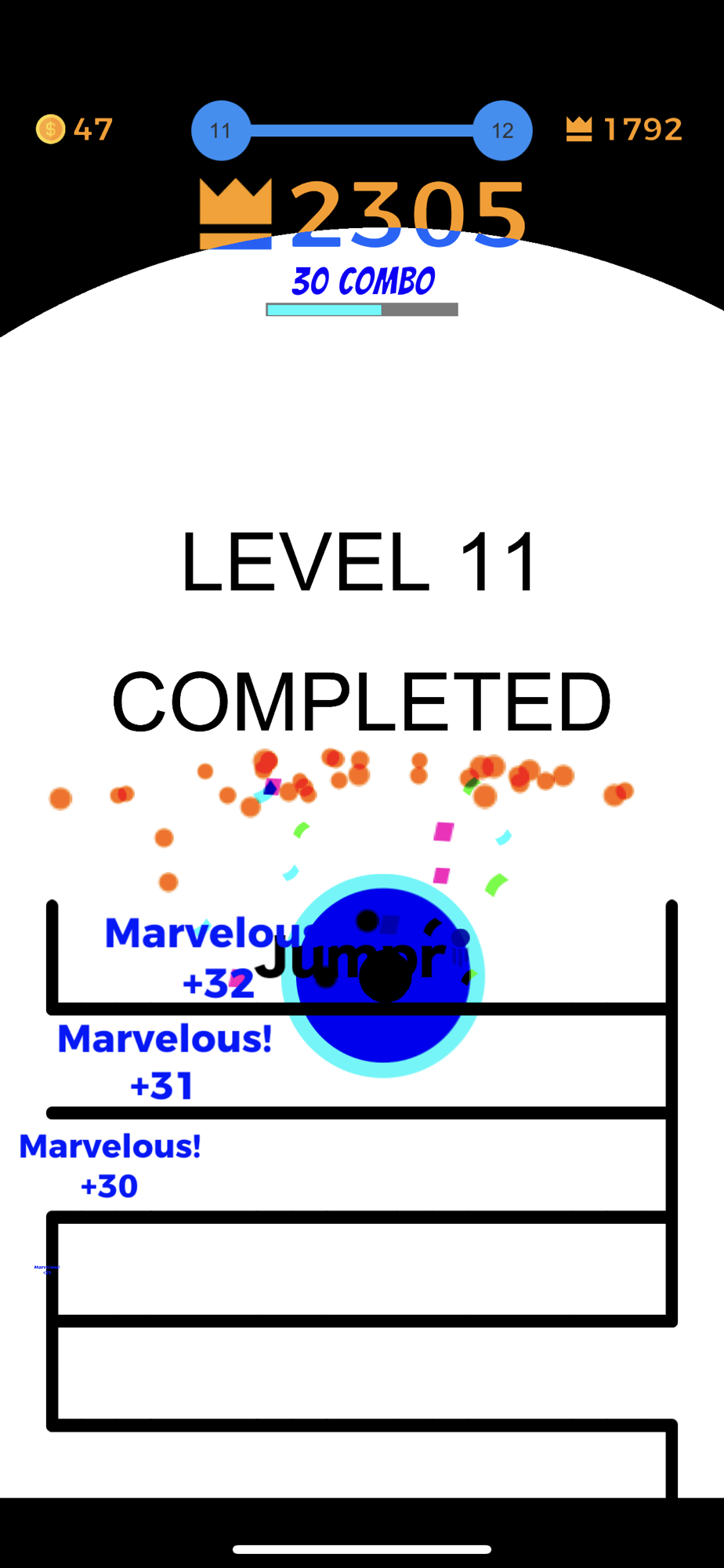 Play in endless mode or level progress. Complete jump combos and boosters to stack your points.