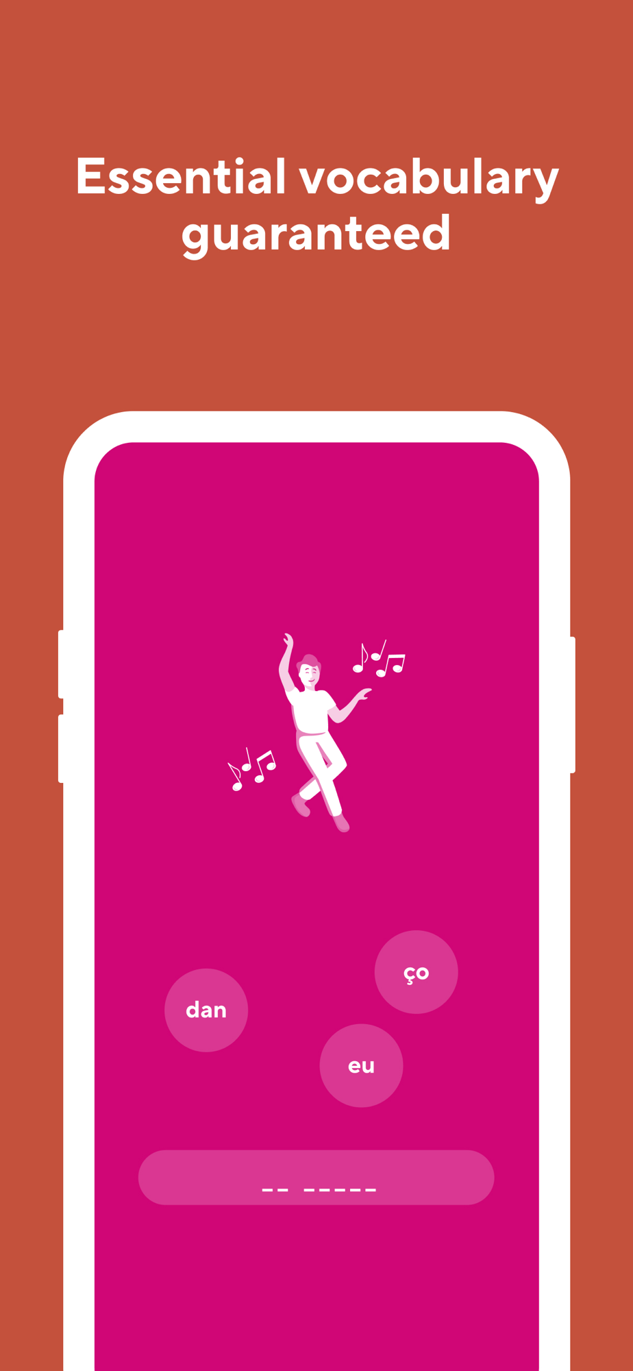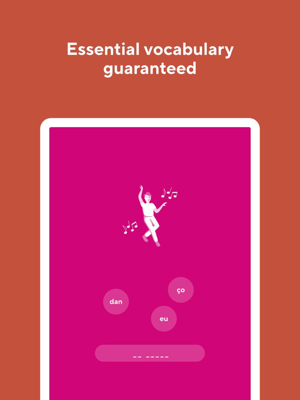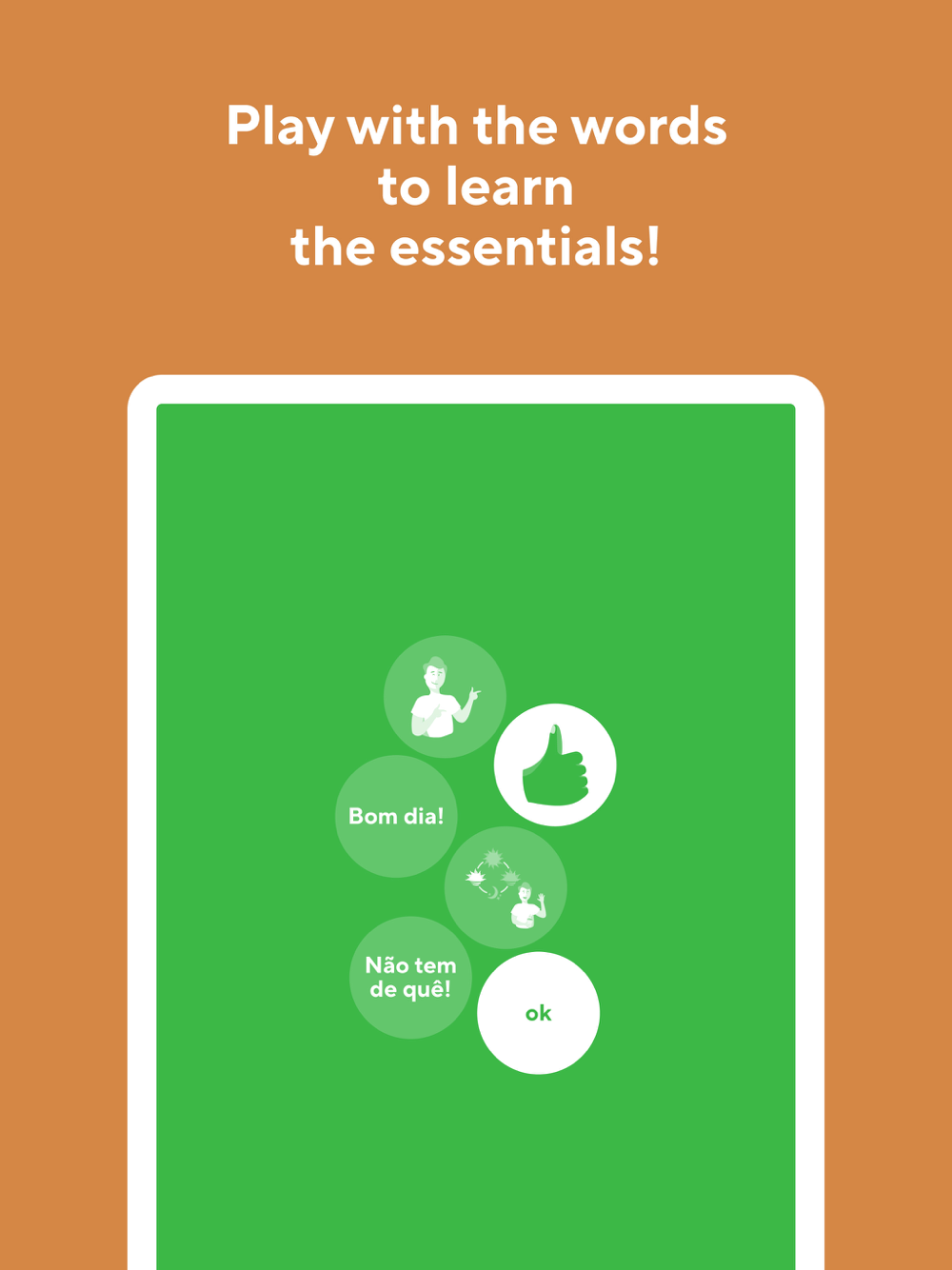 Vocabulary only: Zero grammar, just handpicked practical words. That’s our focus and we do it extremely well. The app teaches the Portuguese alphabet as well.