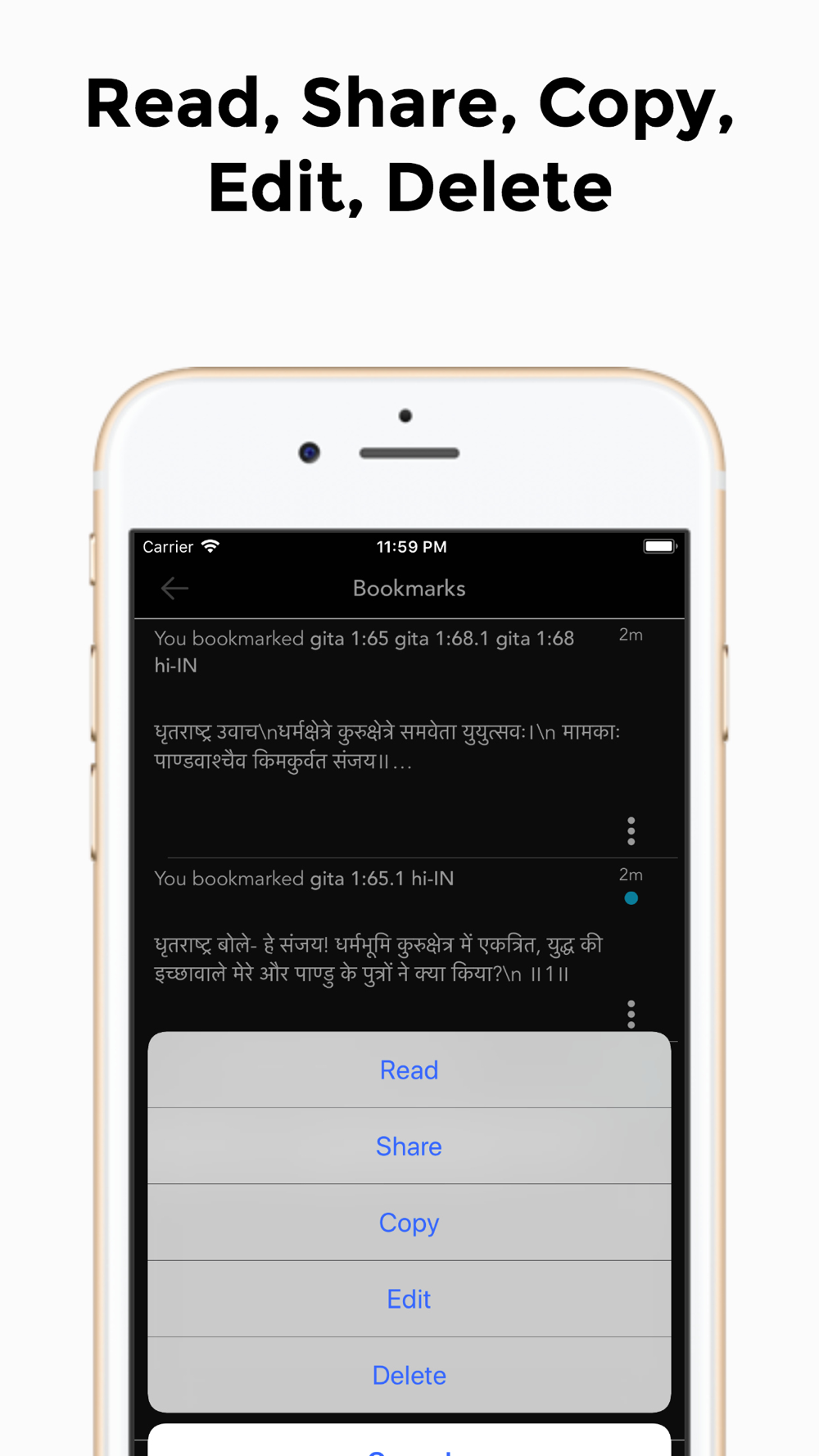 Some features of गीता के 121 अनमोल वचन (Bhagvad Gita Quotes) iOS app.