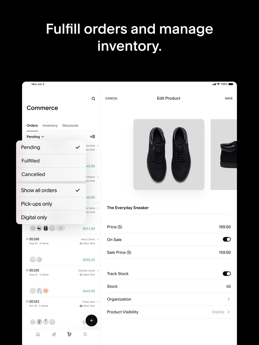 • Sell in person with Tap to Pay and Point of Sale (US only).
