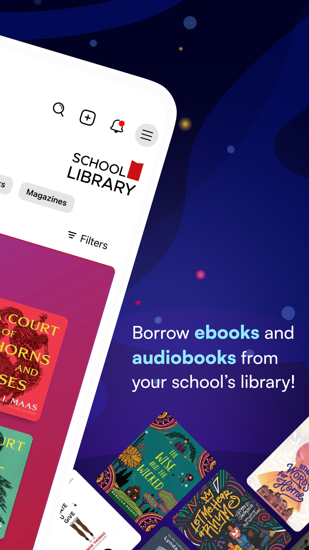 Borrow ebooks and audiobooks from your school's library with Sora. Setup is simple - just find your school and sign in. Then download or stream your assignments and favorite books to your device.