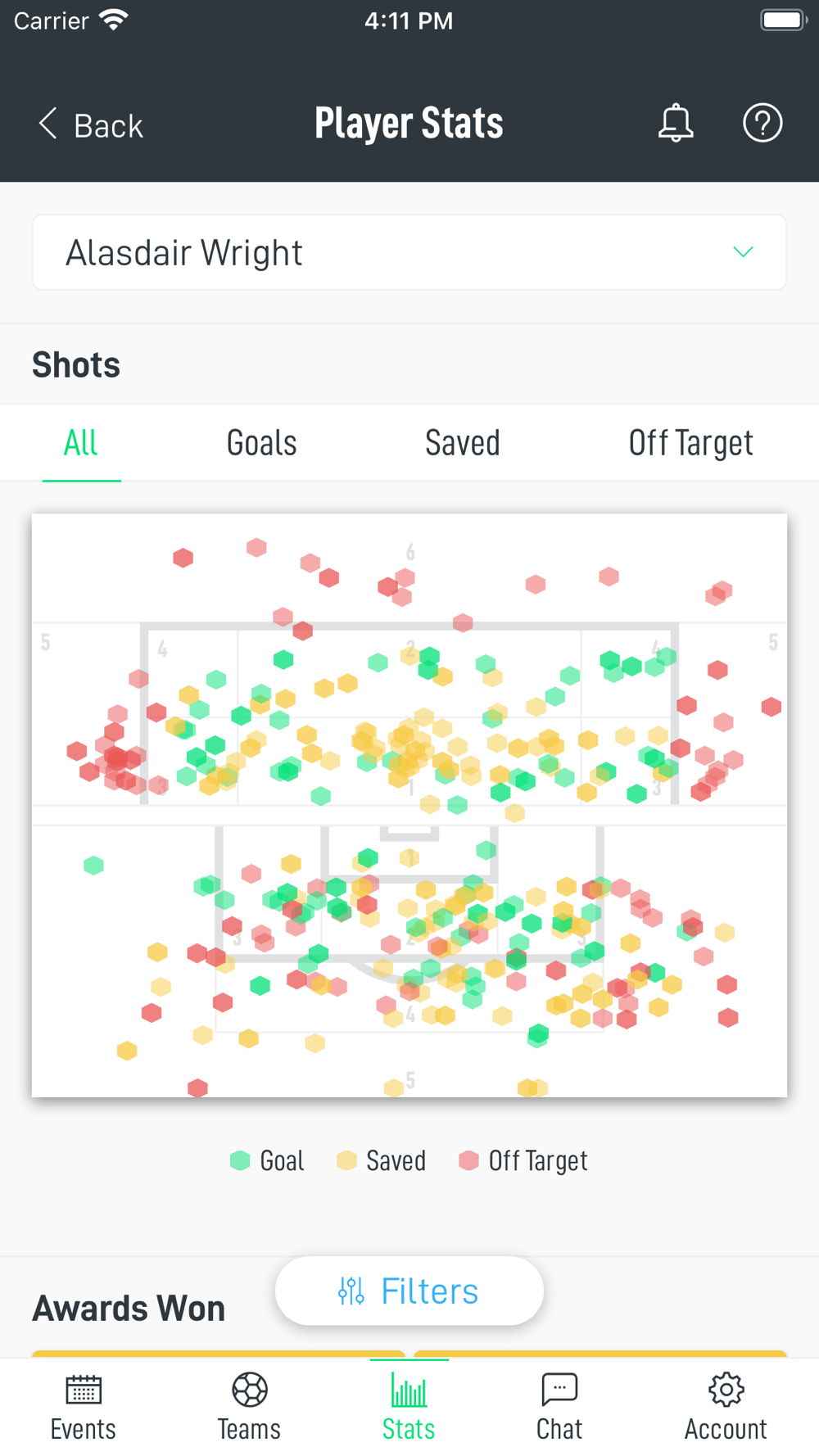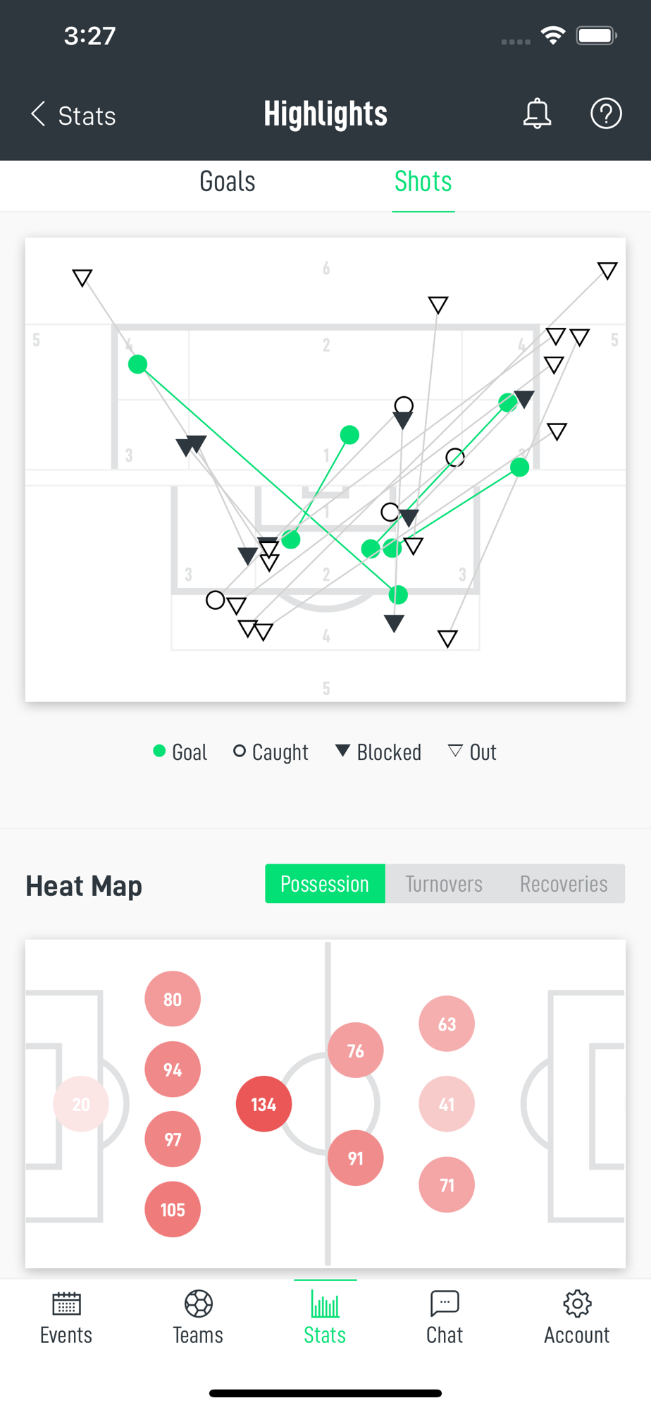 * A simple interface lets anyone capture important statistics like possession %, passes, turnovers, recoveries, and even where each shot was placed.