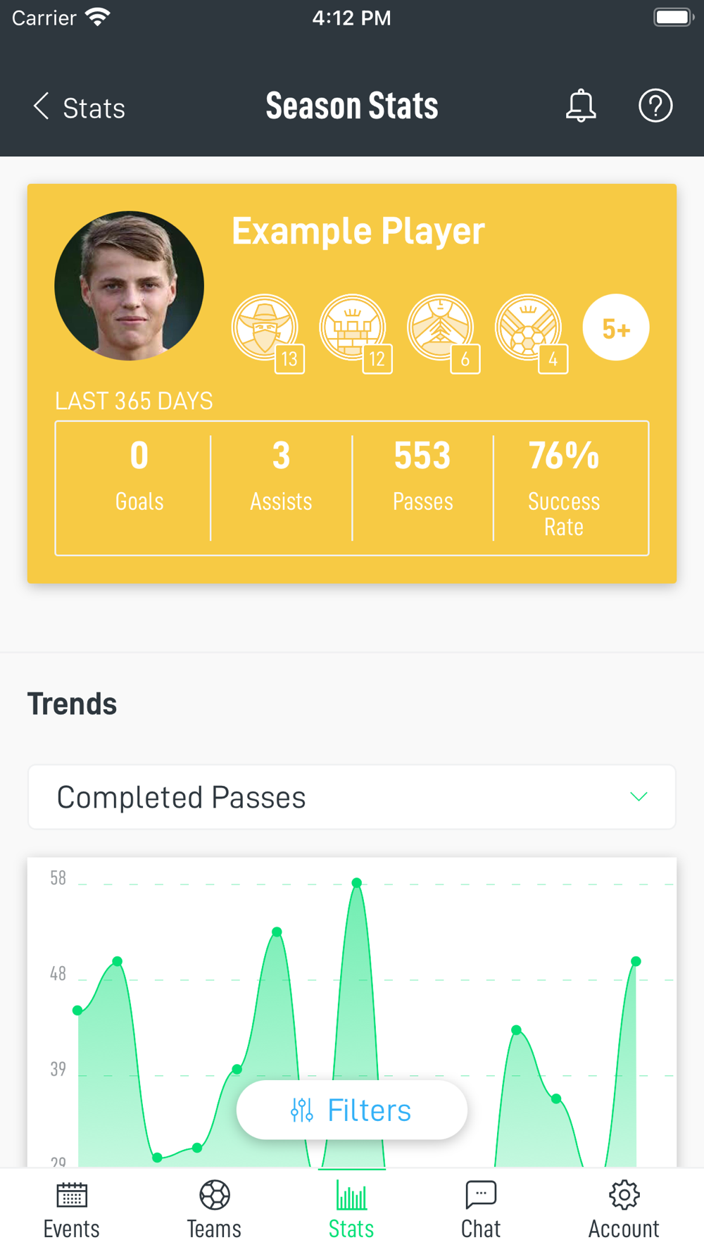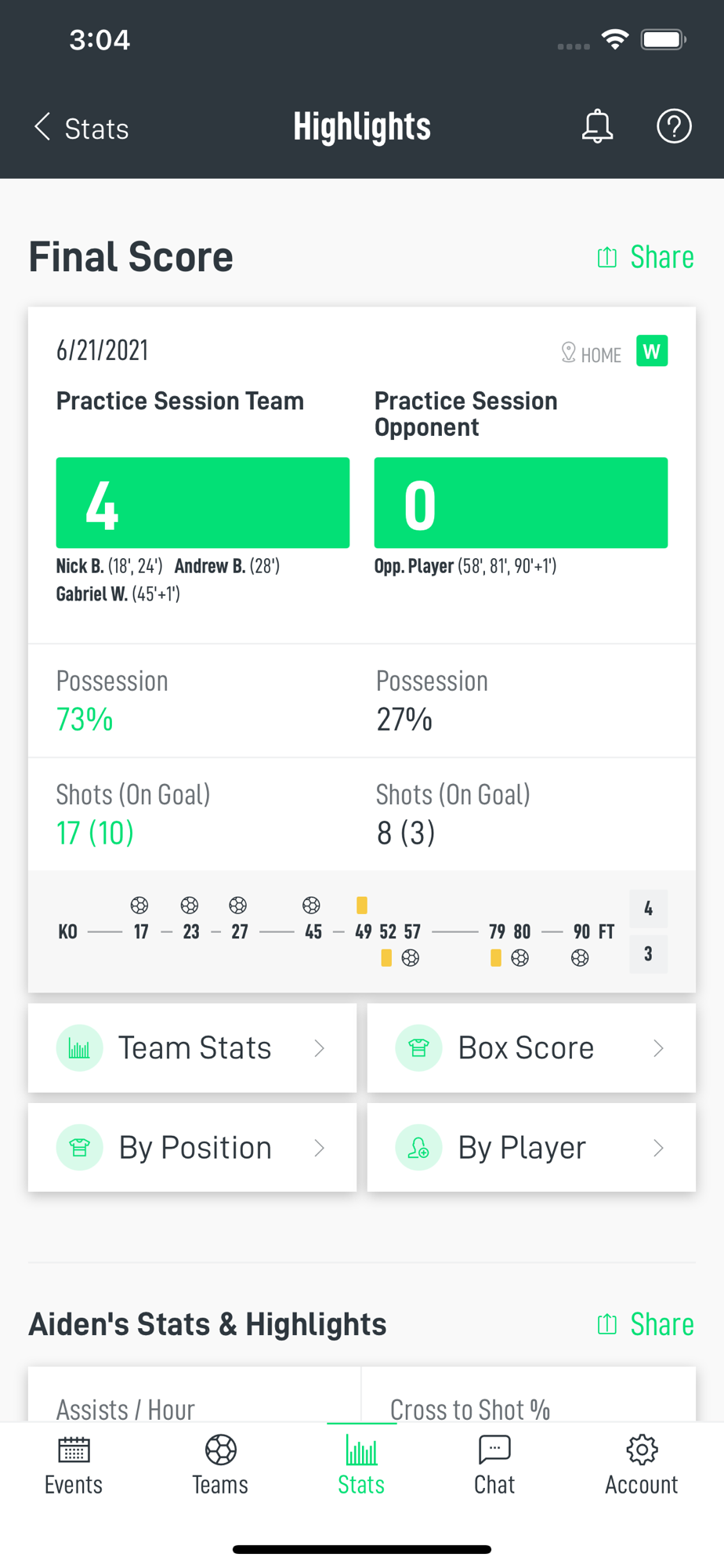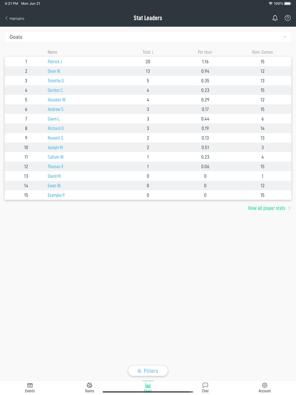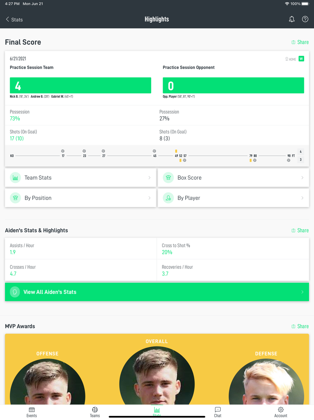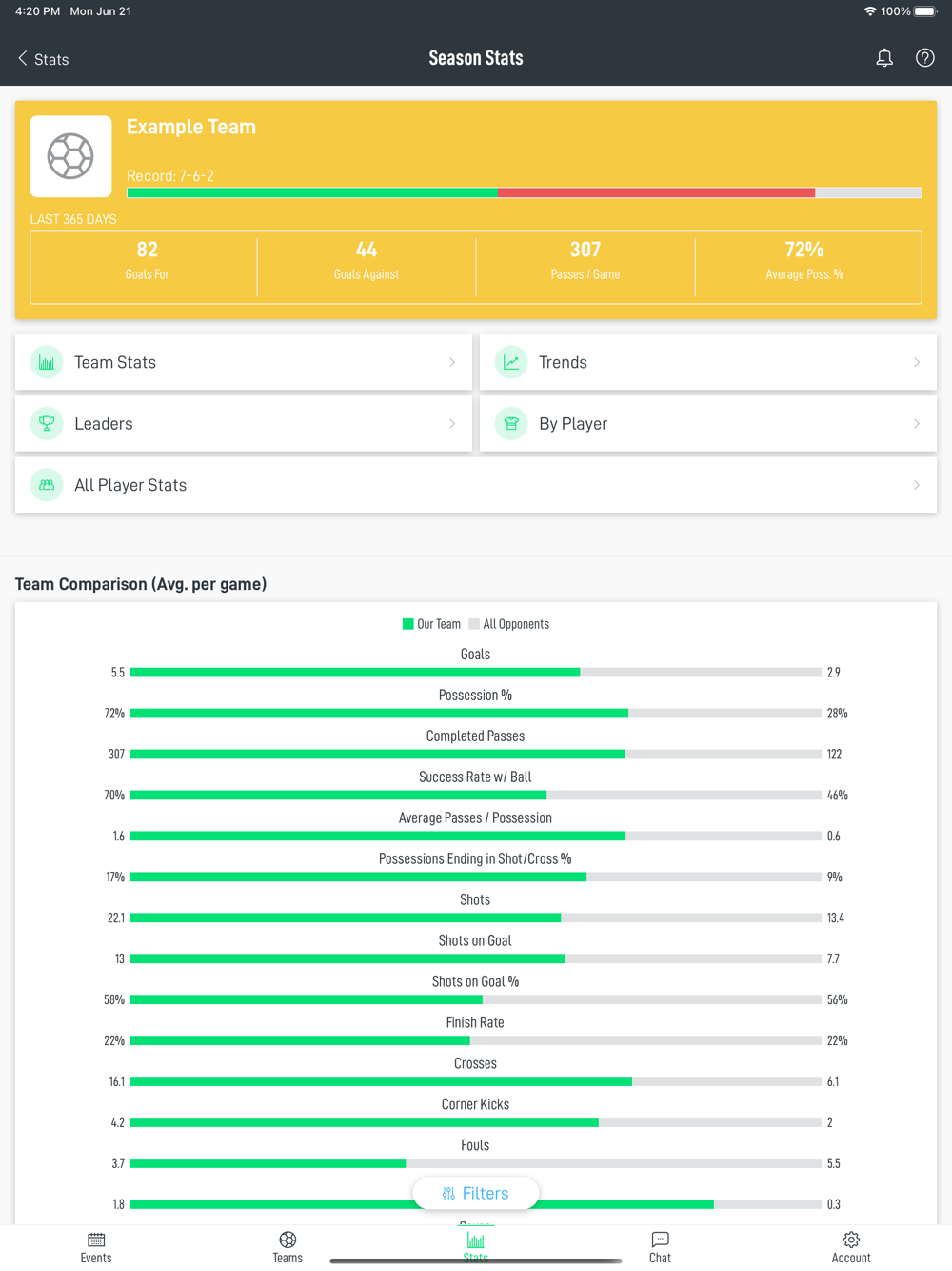* Team stats help you understand how your team is performing against your opponent and over time.