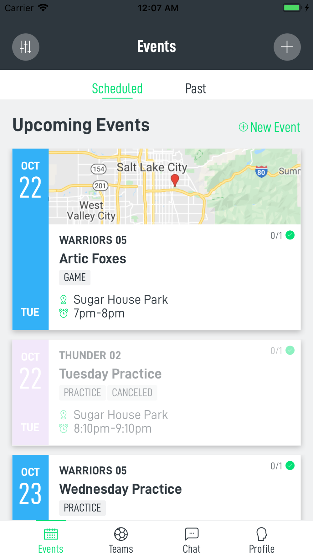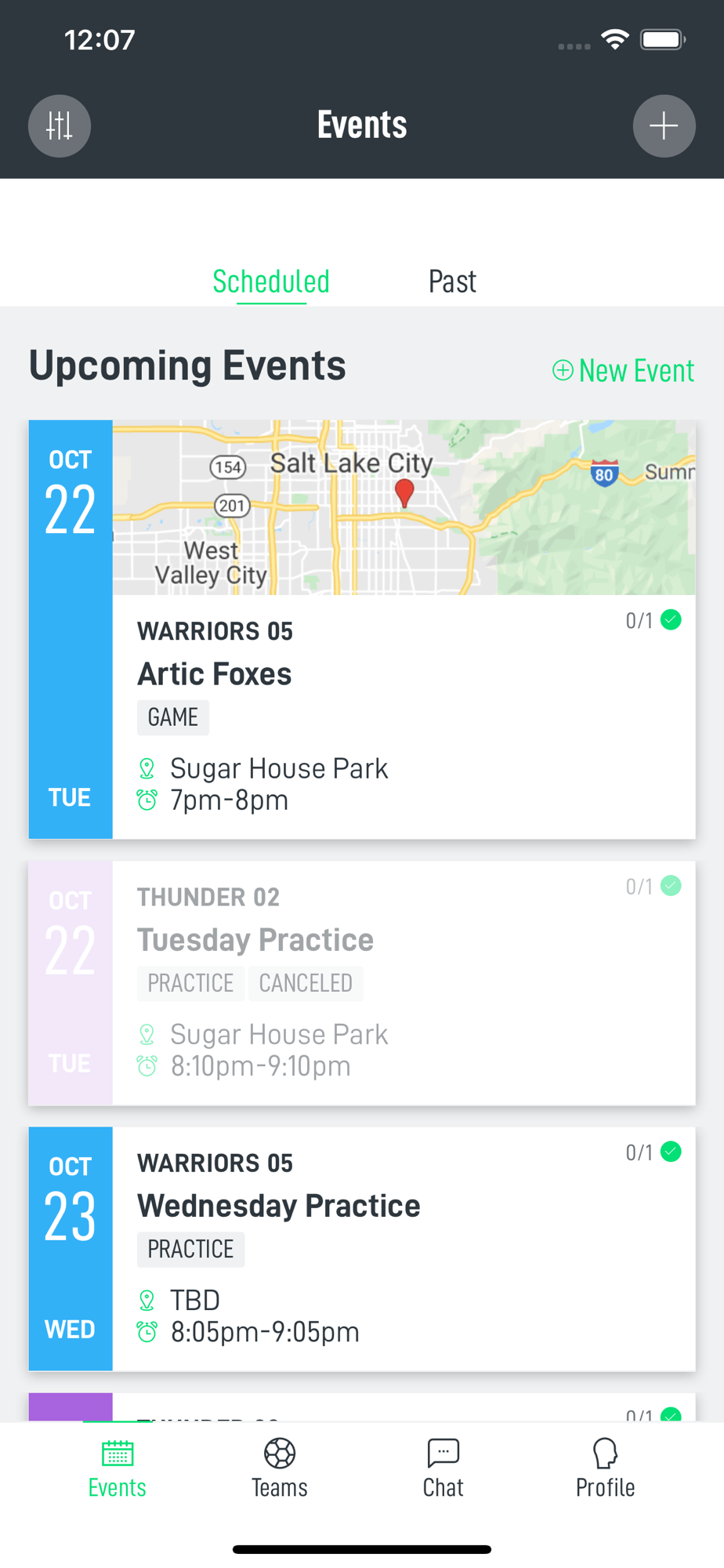 *Event scheduling lets you create practices, scrimmages, matches, and other team events so you can see your entire schedule in one place. You can easily sync events to your phone and internet calendars and even give extended family the ability to sync only your matches. More than one team? No problem. Quickly filter and search to find specific teams and events.