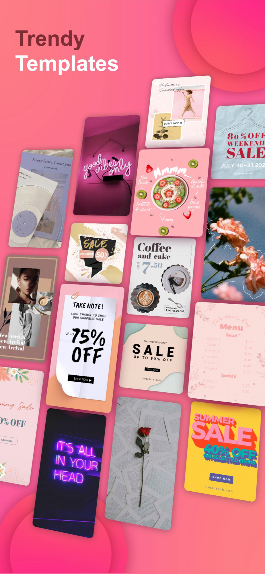 Pinso is the simplest and most powerful tool to create your promotional posters, advertisements, Story, cover photos...You can create professional unique designs in a few clicks. No matter for your business or your social media, all your designs will wow the world!