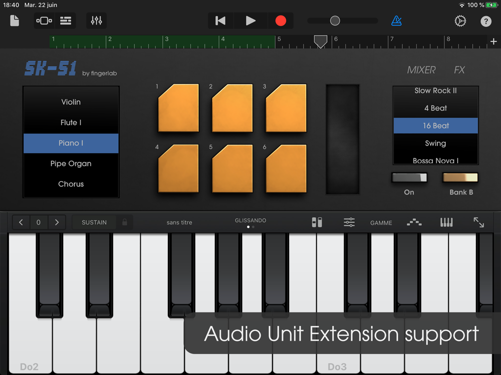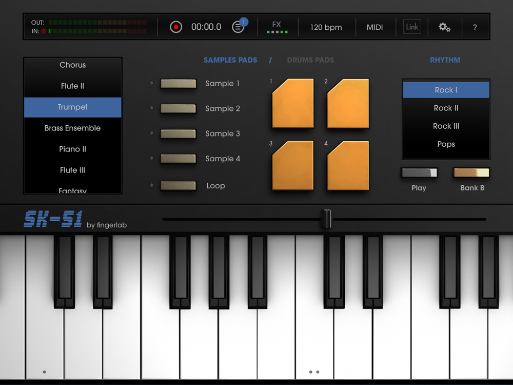 With its nice and true to life interface, many instruments (Trumpet, Flute, Piano, Vibraphone, …), 4 sampling slot and many drums patterns and sounds, the SK-51 is versatile and fun music tools.