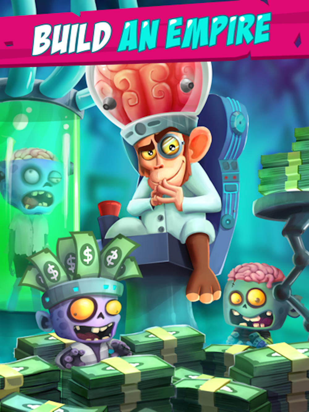 Get prepared for the post-apocalypse world by augmenting brains! Step into the world of zombies controlled by the Mad Scientist. Help him take over the post-apocalypse world by extracting the best brains and doubling the zombies. Research new brains, upgrade the existing ones to a new level, keep the production going and create havoc. Rule your clicker farm like never before! SO KEEP TAPPING AND BUILD YOUR OWN TYCOON EMPIRE!