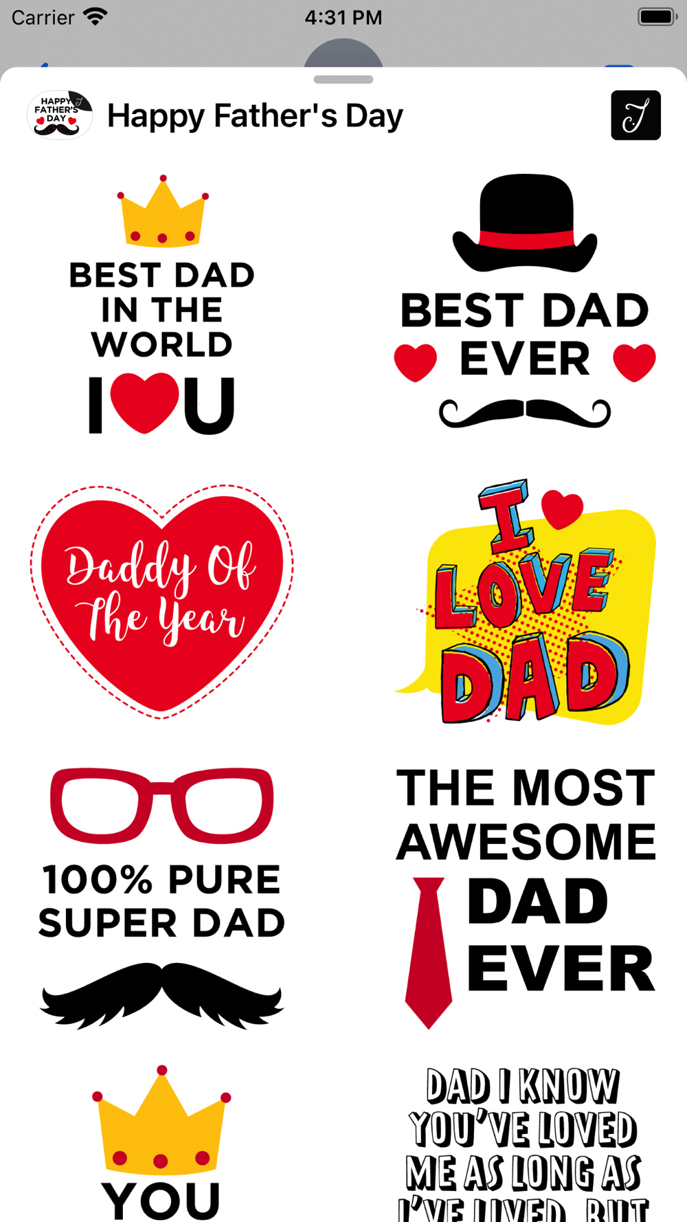 Happy Father’s Day, Father's day is always the right time to reconnect again if you have not been in touch for a while. This iMessage sticker pack is ready to use with lots of option and a good way to start the conversation.