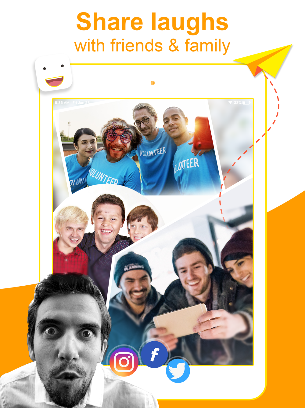 Our app has a powerful face scanner, photo booth-like features and the editing power to produce videos and photos that will bring you and your friends uncontrollable laughter. For optimal performance, please make sure you use the app without your glasses and point your device directly at your face.