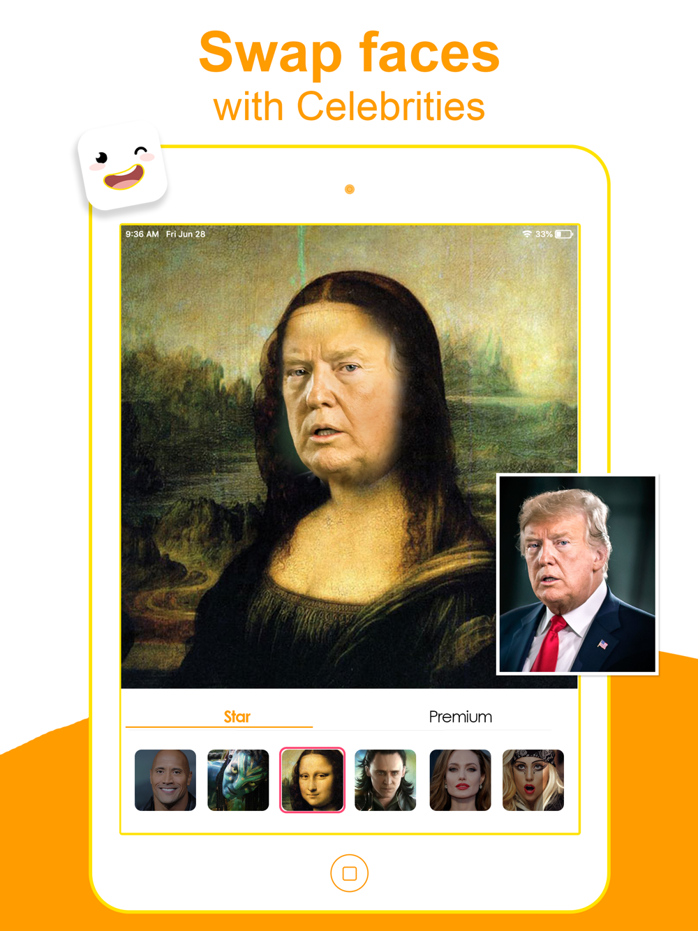 Face Swap scans your face in real time (live) for face swapping videos and also pictures. Ready for a fun time? Hop into the Face Swap photo booth and enjoy!