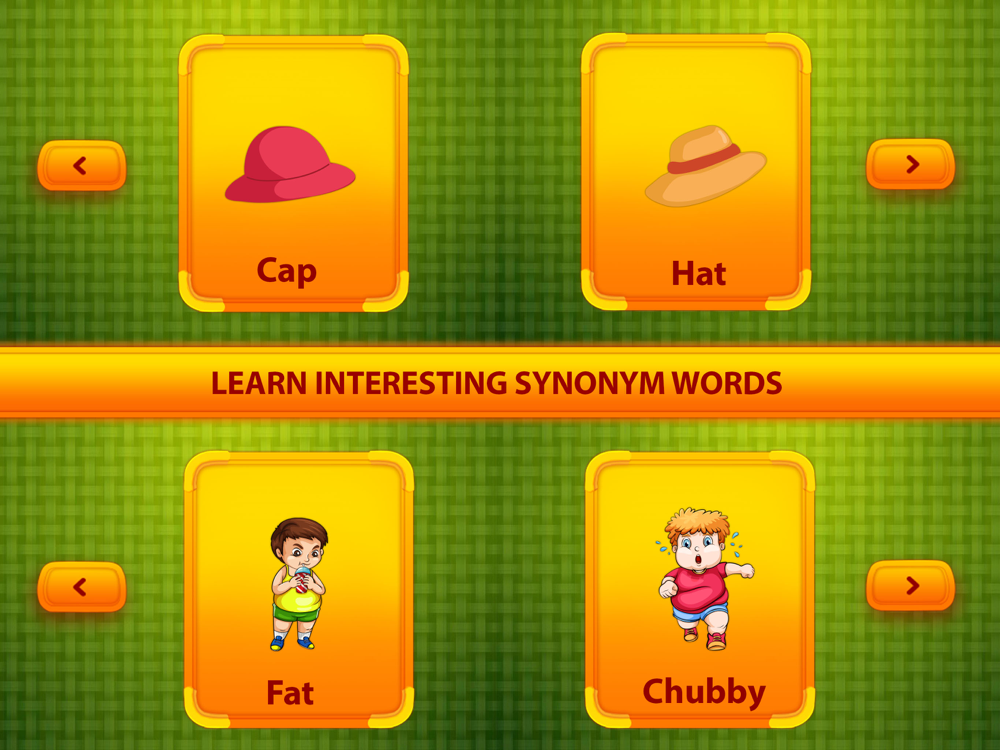 Synonyms Words For Kids gives us two Modes "Learn Mode" and “Play Mode"... Learn Mode helps your kids to learn the magic words. Play Mode test your kids skills on identification and memory.