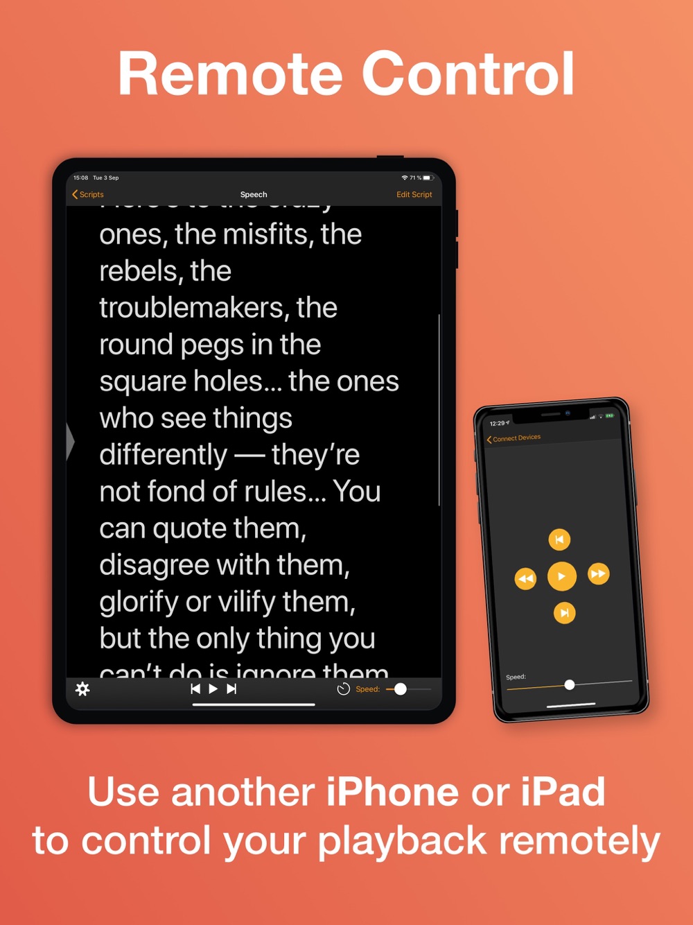 With this app, you can read your script easily without worrying about forgetting the next line. Teleprompter works well on iPhone, iPad and MacOS too!