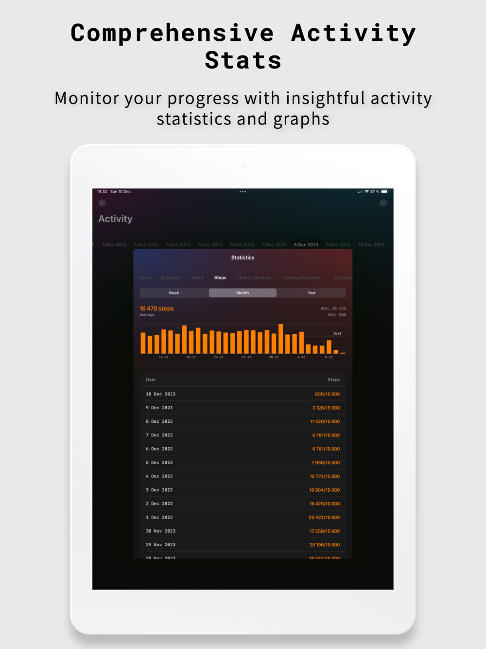 - Customizable Goals: Set personalized goals for Movement, Exercise, Standing, Distance, Steps, and Floors.