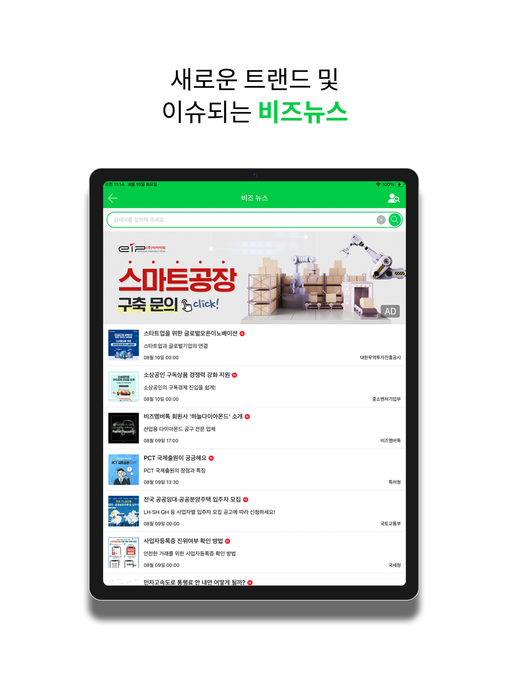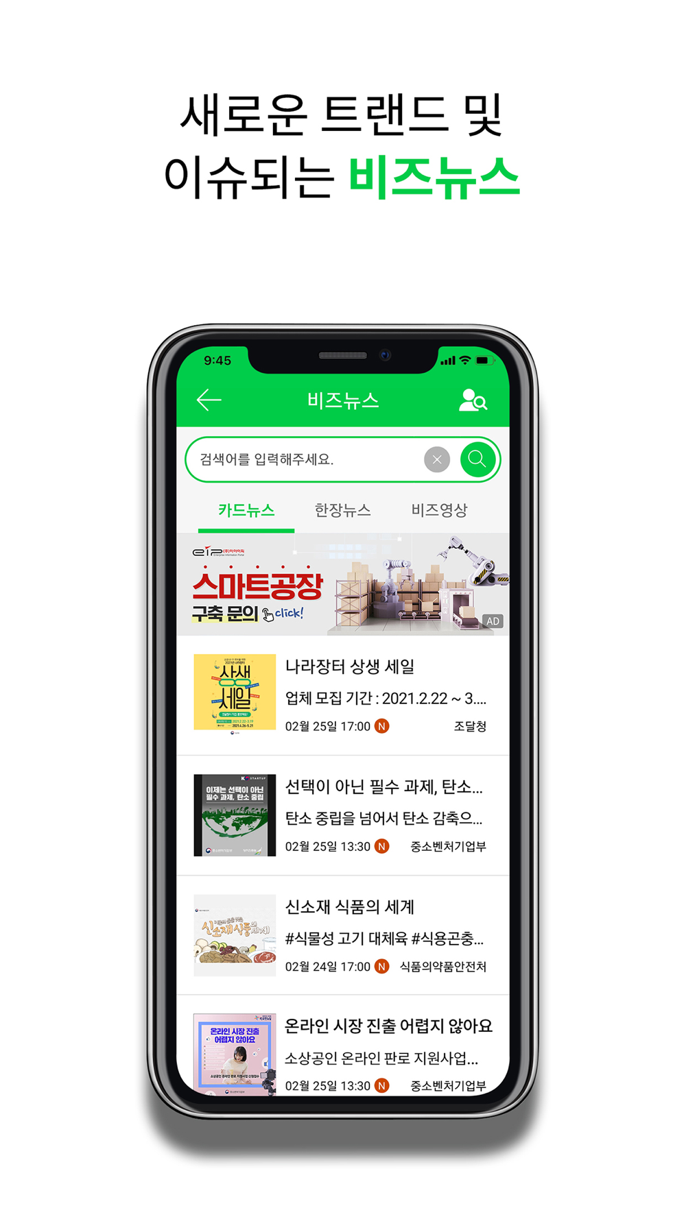 - 내 사업 분야 및 관심 분야의 새로운 트랜드 및 이슈를 카드 뉴스 형식으로 제공해드립니다.