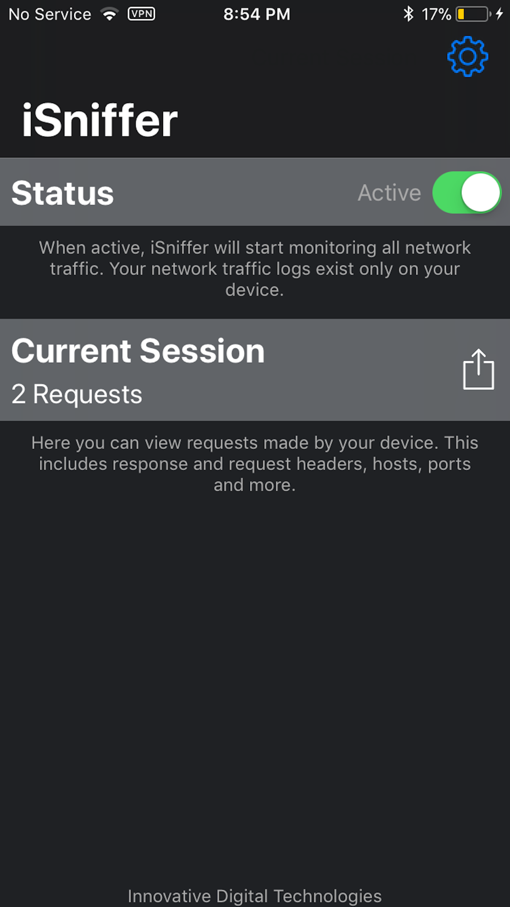 iSniffer respects your privacy. The VPN created is a local VPN meaning all the requests pass through iSniffer on your device only. This means that the only copy of your requests is on your device. We do not look at or monitor your network requests in any way.