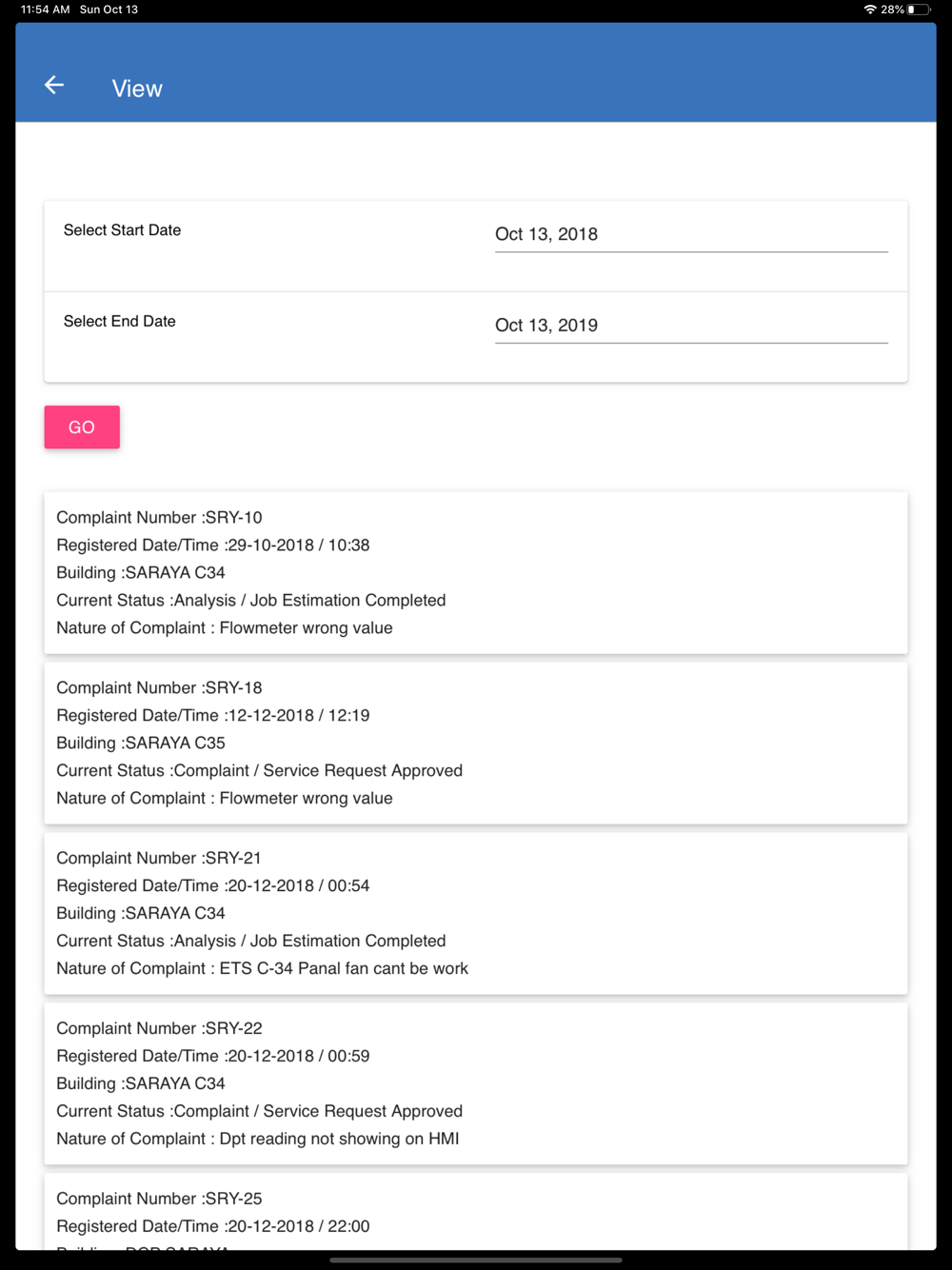 At any time your customers can submit a complaint, raise a request work, upload images and documents.