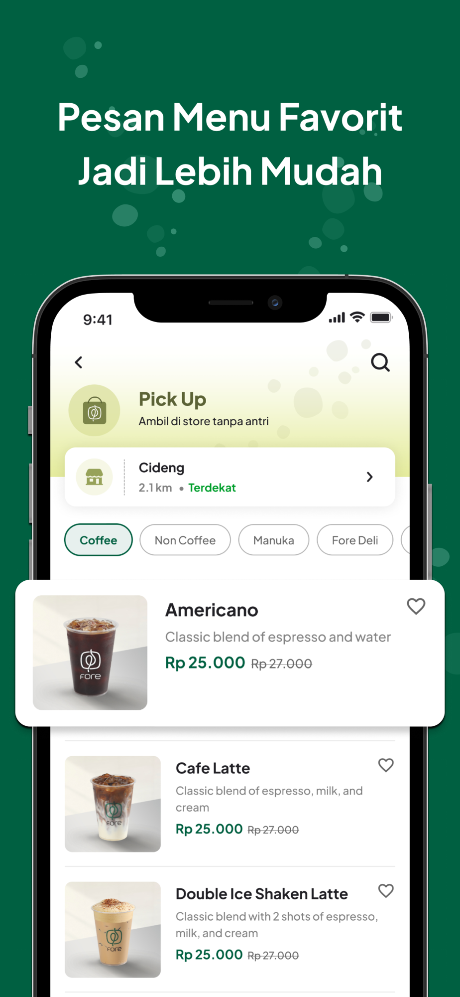 Fore Coffee adalah startup kopi retail pertama yang menggabungkan kopi dengan teknologi. Fore Coffee berkomitmen membuat kopi berkualitas premium dengan harga terjangkau untuk Indonesia.