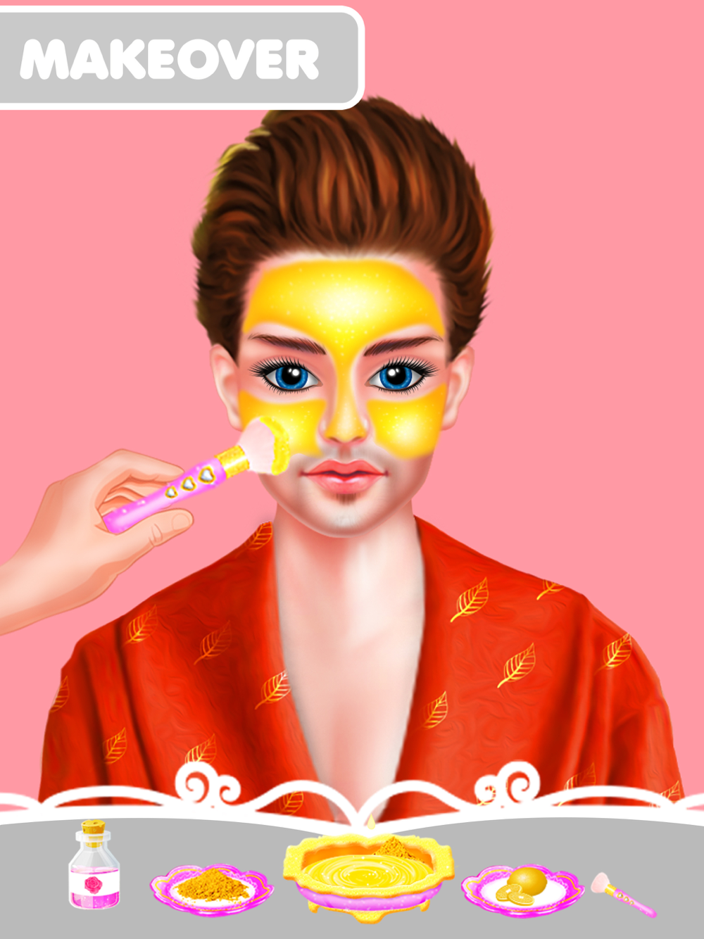 Every celebrity want to look Handsome so he goes for spa treatment.Apply different type of tools like soap, shower, towel, pimple remover, prepare mask and apply, cream and Make Your Celebrity Boy looks Charming.