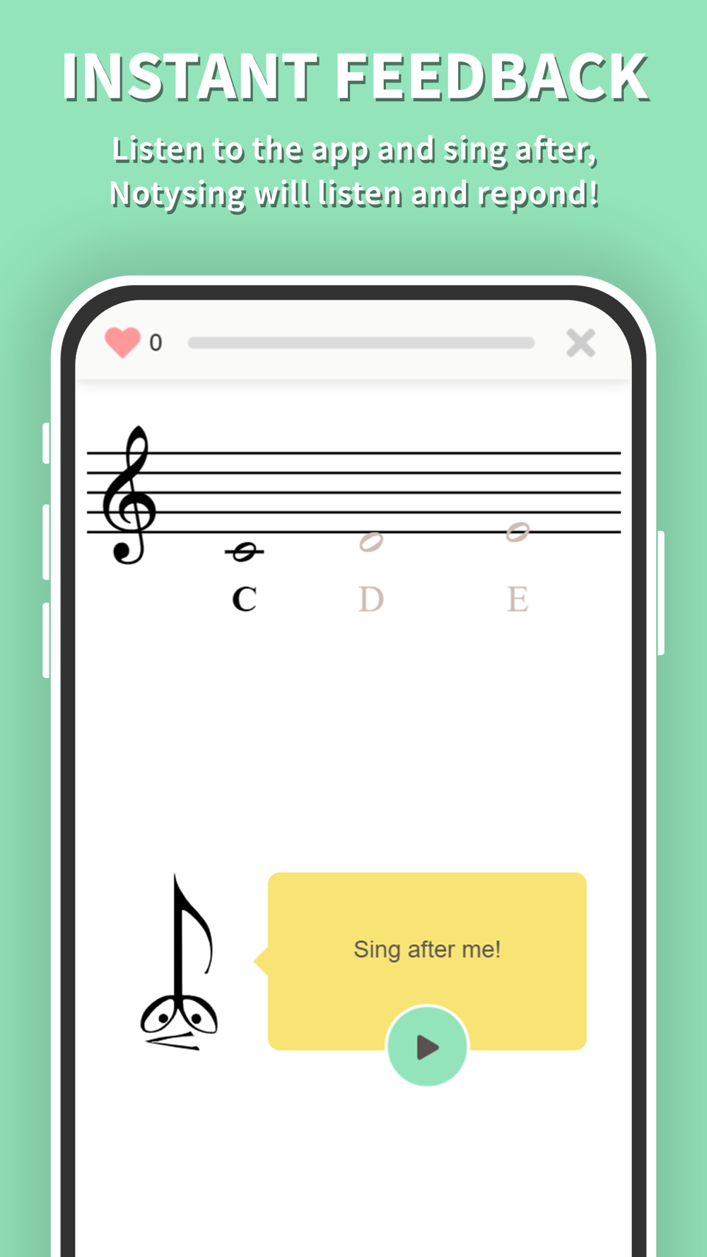 Learn the basics of music in a fun and musical way by singing. You are guided by your digital song coach Noty, who gives you feedback on what you do on your level, from the very first steps and all the way through!