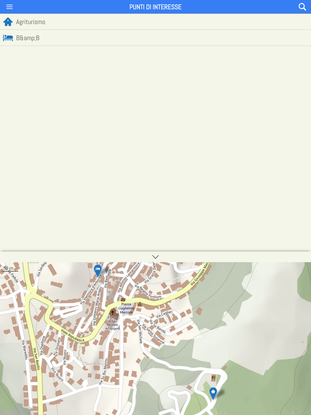 I contenuti all’interno dell’App sono organizzati secondo itinerari e punti di interesse suddivisi secondo categorie tematiche. Tutti i contenuti, mappa compresa, sono disponibili anche in modalità offline.