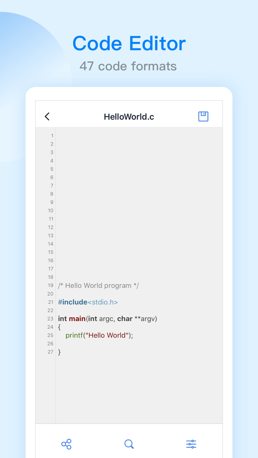 Supports browsing and editing of 47 code formats such as json, js, log, java, php, swift, xml, net, etc.