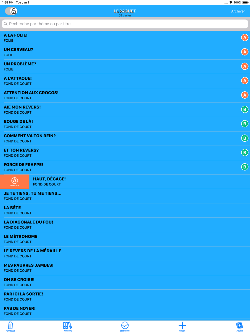 Un jeu de carte, avec un tirage au sort pour pimenter le jeu du Badminton! Les cartes donnent du pouvoir à certains joueurs et des contraintes aux autres.