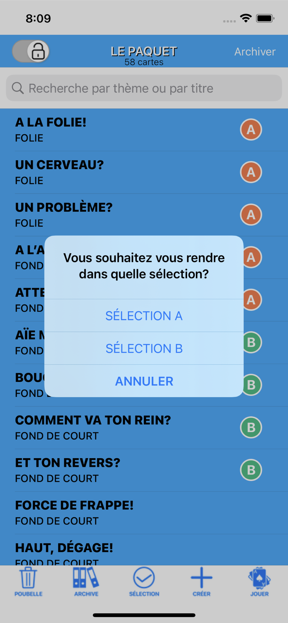 *Sélectionner une partie des cartes pour cibler un thème en particulier tout en réalisant un tirage au sort avec la sélection.