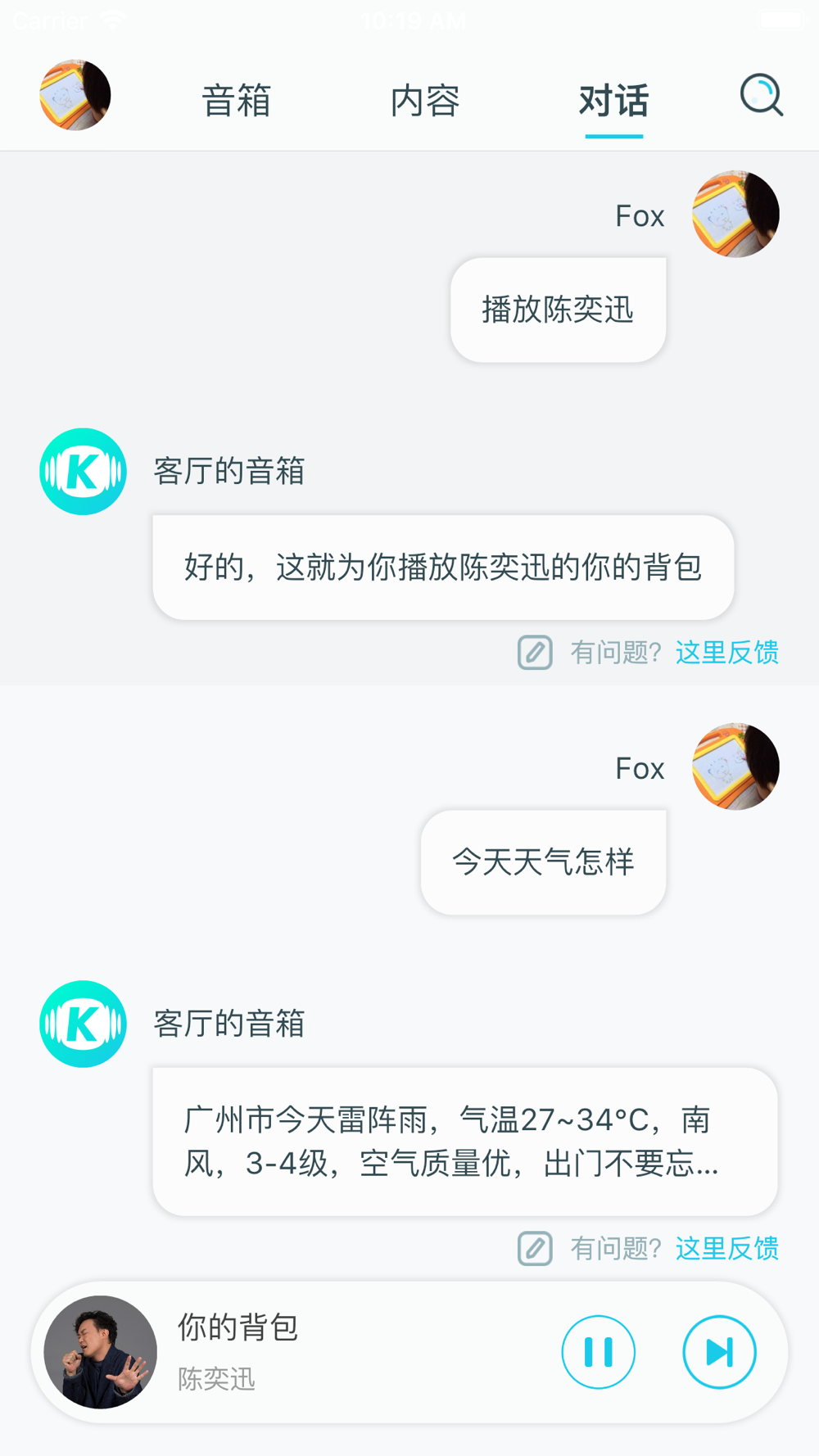 酷狗音乐智能音箱官方应用,为用户提供丰富的音乐内容和贴心的产品使用引导。