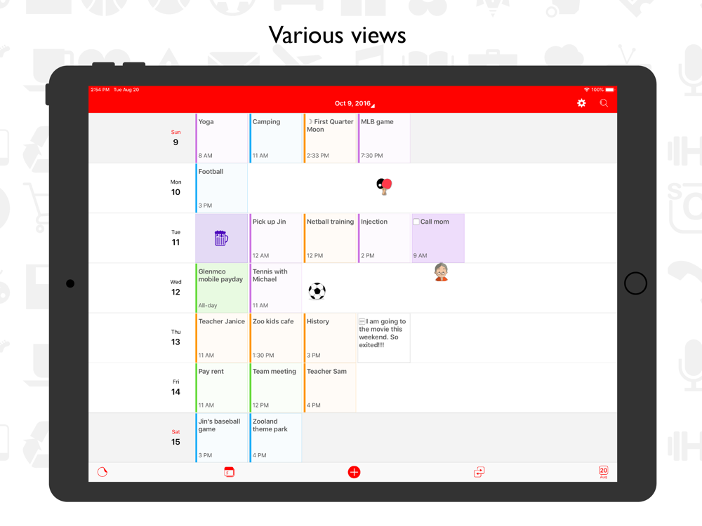 Awesome Calendar 2 includes tons of cute stickers that you can place directly on your calendar views like a post-it. Mark an important day, or decorate the entire calendar however you like!