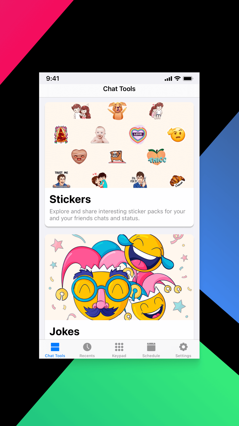 - Share jokes, quotes, stickers & special character to your friends
