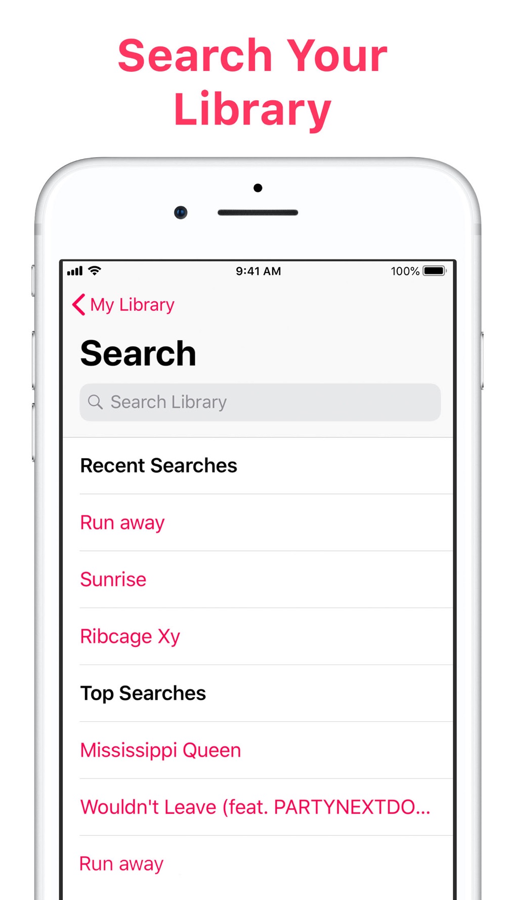 - Library View: View your entire music library, add filters, and sort your music. Library View has sections for songs, albums, artists and genres.